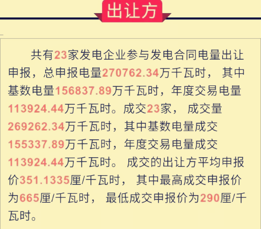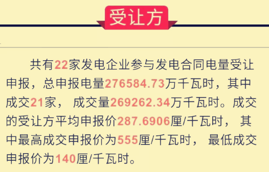 對(duì)本次電力交易,總共有23企業(yè)參與出讓申報(bào),總申報(bào)電量270762.34萬千瓦時(shí),22加企業(yè)參與受讓申報(bào),總申報(bào)電量276584.73萬千瓦時(shí)。