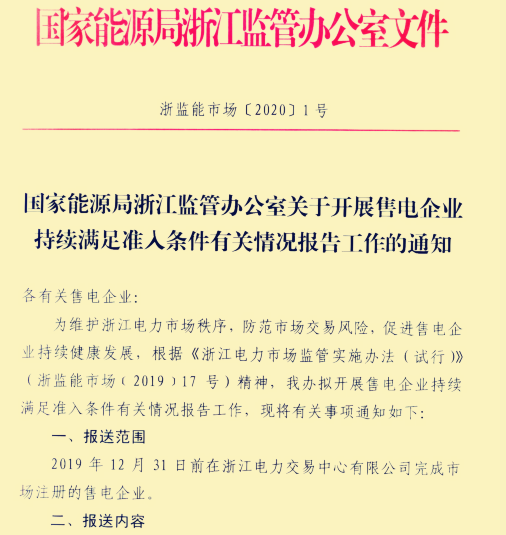 近日,國家能源局浙江監(jiān)督管理辦公室文件發(fā)布了《關于開展售電企業(yè)持續(xù)滿足準入條件有關情況報告工作的通知》,對于不少售電公司來說,這份文件是值得注意的。