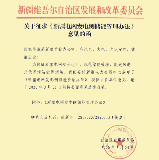 近日,新疆發(fā)改委印發(fā)一份關(guān)于《新疆電網(wǎng)發(fā)電側(cè)儲(chǔ)能管理辦法》的意見函,讓很多的風(fēng)電、火電、光伏發(fā)電、素能洗液以及各大售電公司紛紛關(guān)注這份意見函的內(nèi)容。