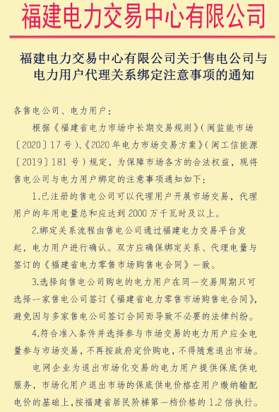 前幾天,福建省電力交易中心發(fā)布《關(guān)于售電公司與電力用戶代理關(guān)系綁定注意事項(xiàng)》,各市場主體應(yīng)該要對這份通知引起重視。