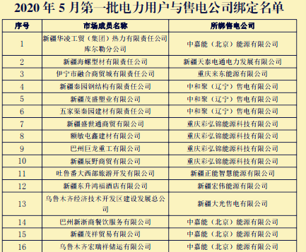 下面就給出一部分的名單,完整名單請(qǐng)大家前往新疆電力交易中心網(wǎng)站查詢: