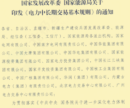 《電力中長(zhǎng)期交易基本規(guī)則》的內(nèi)容內(nèi)容包含到電力市場(chǎng)的多個(gè)市場(chǎng)主體,涵蓋各類電網(wǎng)企業(yè)、電力用戶、配售電公司、發(fā)電企業(yè)、電力交易機(jī)構(gòu)、電力調(diào)度機(jī)構(gòu)等。
